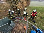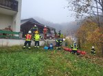 Am Samstag 8. November war es wieder soweit. Um 14:00 Uhr ging die Alarmierung: „Brand Gebäude Menschenansammlung; verunglückte Person in verrauchter Garage, Lagerfeuer außer Kontrolle, vermisste Person“ im Feuerwehrhaus ein. Mit unseren drei Fahrzeugen und 21 Mann rückten wir zum Einsatzort in der Ortschaft Hinteredt aus. Nach der Lageerkundung durch den unmittelbar zuvor bestimmten Übungs-Einsatzleiter wurde mit der Brandbekämpfung begonnen. Die Sicherstellung der Wasserversorgung erfolgte gleichzeitig mit einer rd. 200 m langen Leitung vom Löschbehälter. Der Atemschutztrupp konnte zwei verunglückte Personen in der total verrauchten Garage finden und in Sicherheit bringen. Im unübersichtlichen Gebiet wurde die vermisste Person, die ins steile Gelände abgestürzt war, entdeckt, und mit der Korbtrage aus ihrer misslichen Lage gerettet werden. Die Abarbeitung der herausfordernden Aufgabenstellung erfolgte unter Einsatz aller zur Verfügung stehenden Mitteln durch die fachkundigen Feuerwehrkameraden. Die Nachbesprechung, der von Franz Schurz und Martin Sattleder ausgearbeiteten Übungsannahme fand anschließend im geselligen Rahmen im Gasthof Leitner statt.